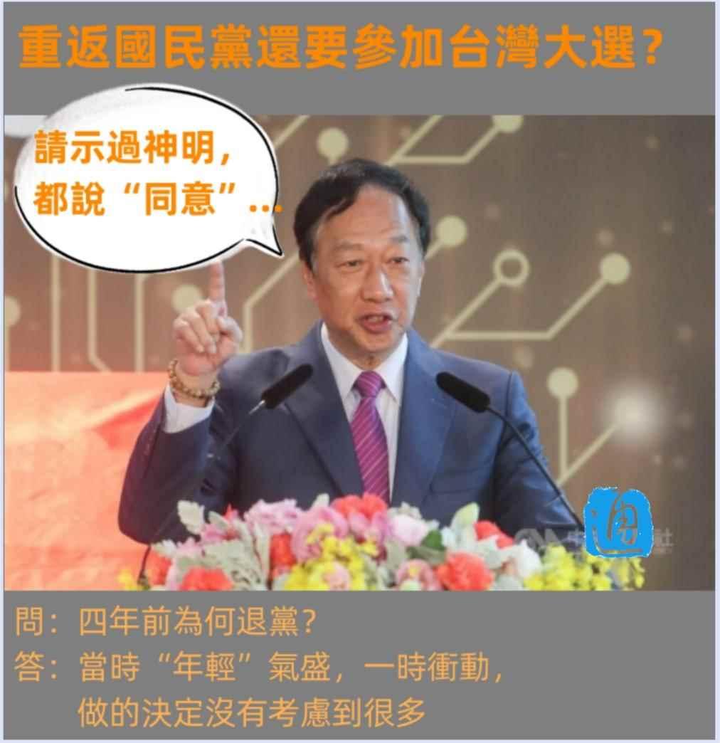 重返國民黨還要參加台灣大選?郭台銘:請示過神明,都說“同意”…分享到: