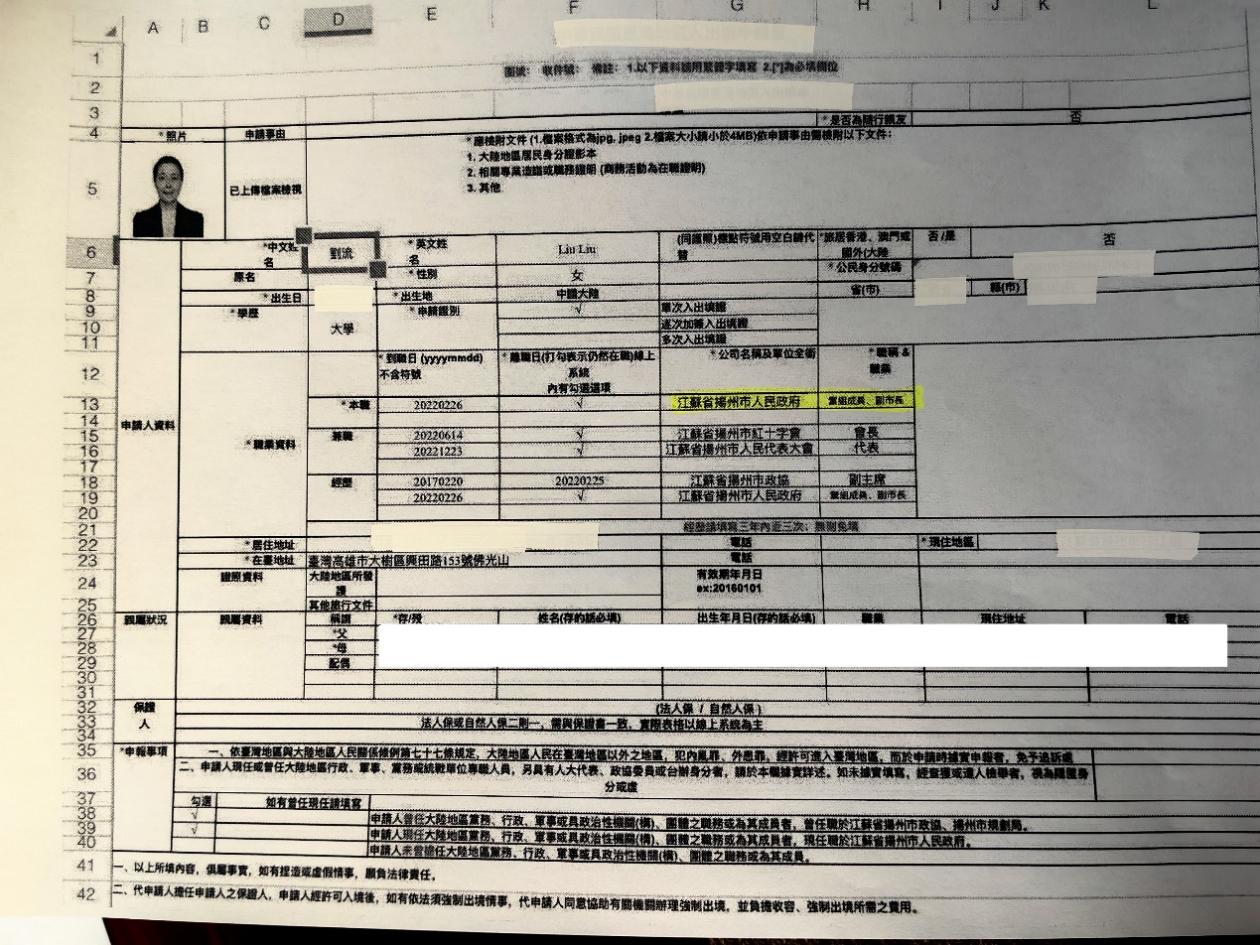 2月7日的本職證明清晰寫有劉流的職務 台灣佛光山開山宗長、國際佛光會創辦人星雲大師2月5日圓寂。應佛光山邀請,國台辦、國家宗教局、中國佛教協會及江蘇省有關方面組成吊唁團,計劃於2月11日至14日赴台吊唁。吊唁團38人在佛光山協助下循正常途徑統一辦理赴台手續,并按計劃於11日早上到首都機場集合準備出發。由於台灣方面阻擋,吊唁團無法成行。 本月13日,《自由時報》援引“知情官員”的話稱,在大陸38人赴台吊唁團中,揚州市副市長劉流“捏造身份”,以“江蘇省台辦人員名義”提出申請,這一情況“在審查時被發現”,因此不予入境。 但記者16日看到的相關文件顯示,劉流在申請赴台時填寫的本職為揚州市人民政府黨組成員、副市長,并提供了對應的證明文件。此外,劉流也填寫了其在揚州市紅十字會等機構擔任的兼職,文件中沒有任何地方提及“江蘇省台辦”。換言之,《自由時報》的報道嚴重失實,是對劉流和大陸代表團的抹黑造謠。
