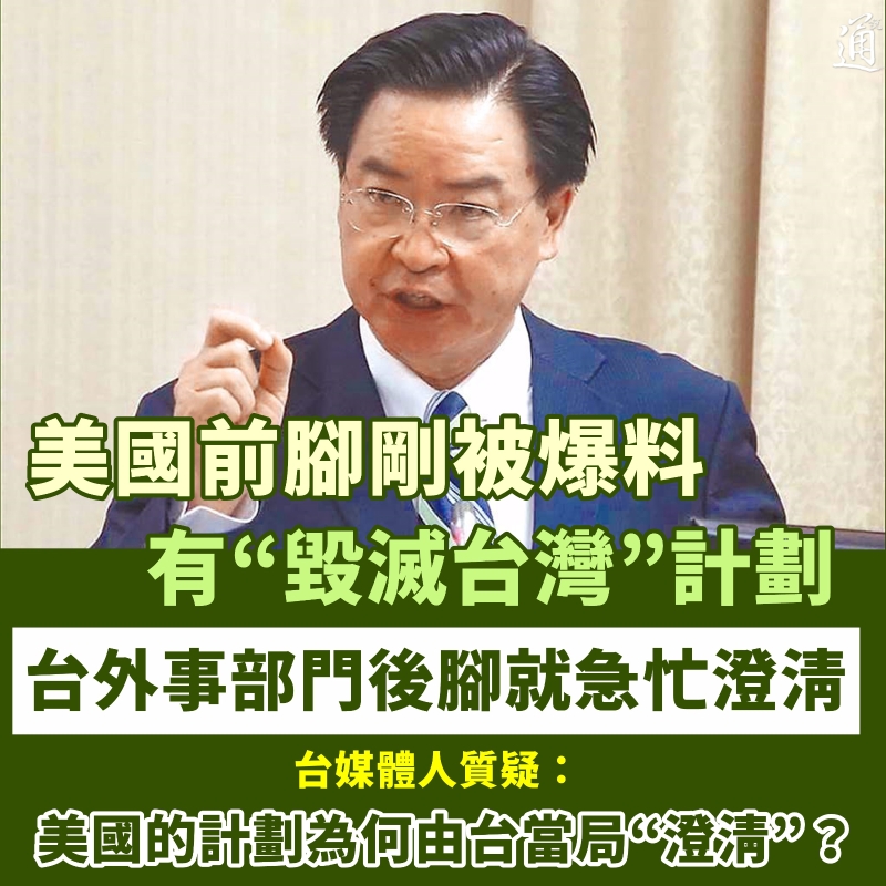 台媒體人:美國的“毀台”計劃,為何由台當局“澄清”?分享到: