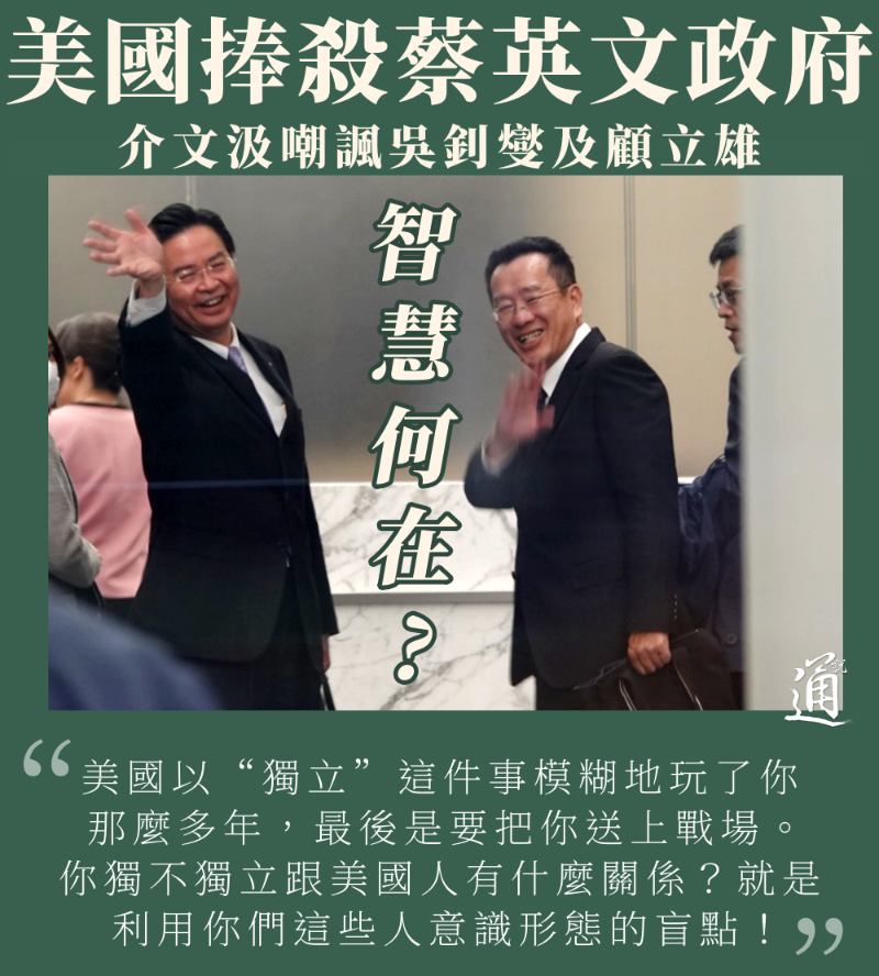 介文汲直言美國捧殺蔡英文政府 嘲諷吳、顧“智慧何在?”分享到: