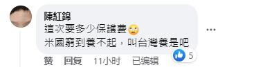 還有網友更關心錢的問題:“這次要多少保護費,美國窮到養不起,叫台灣養是吧”