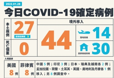 ● 台灣時隔307天新冠確診數低於萬例 台灣流行疫情指揮中心27日通報,新增7745例新冠確診病例,分別為7577例本土病例及168例境外輸入病例;另新增44例死亡。 ● “台獨”大佬辜寬敏病亡