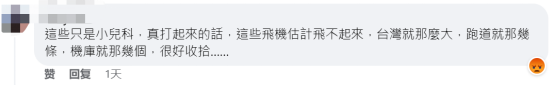 也有網友說,這些只是小兒科,真打起來的話,這些飛機估計飛不起來,台灣就那麼大,跑道就那幾條,機庫就那幾個,很好收拾……↓