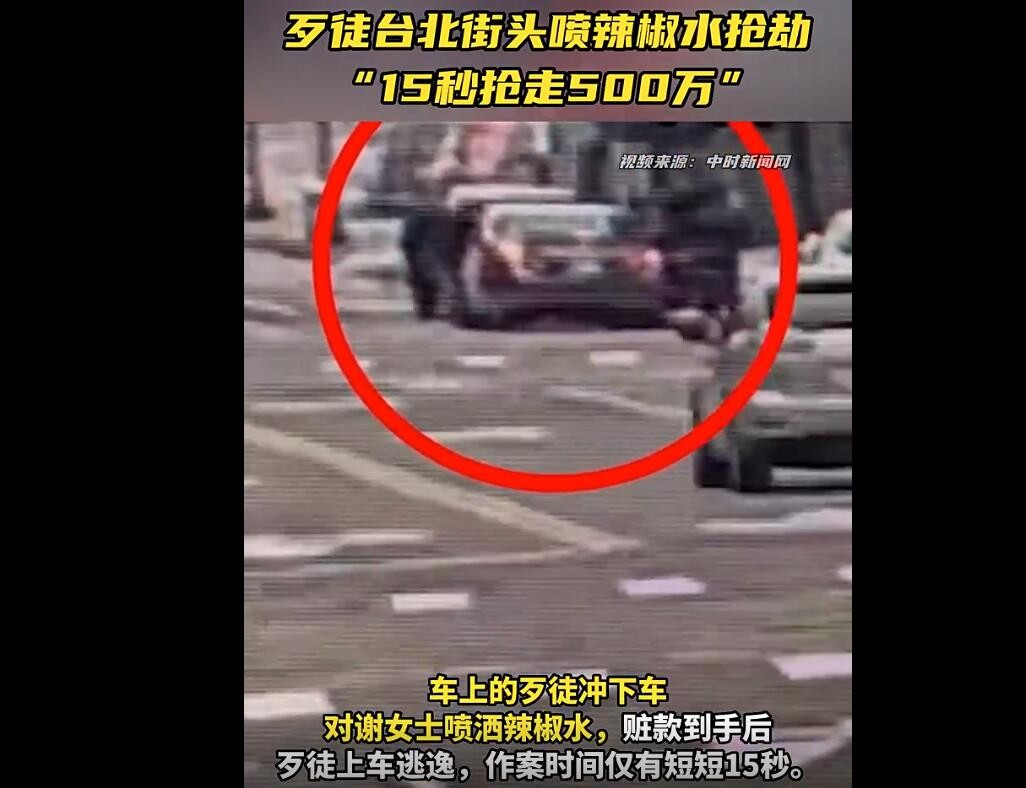 歹徒台北街頭噴辣椒水搶劫,台媒:“15秒搶走500萬”畫面曝光分享到: