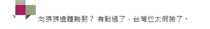 也有網友認為當局反應太大,喜歡做秀。 “向狒狒遺體鞠躬?有點過了,台灣也太假臉了” “鞠躬太過了吧,要不要跪下磕頭”