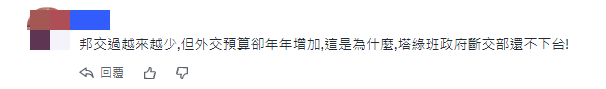 “邦交國越來越少,但外交預算年年增加,這是為什麽,塔綠班政府斷交部還不下台!”