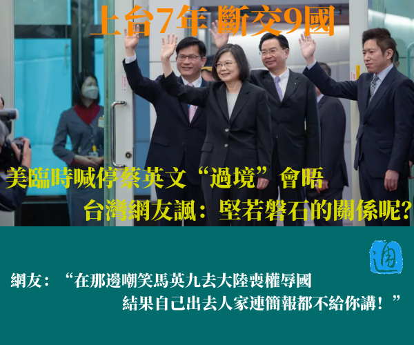 美臨時喊停蔡英文“過境”會晤 台灣網友諷:堅若磐石的關係呢?分享到:
