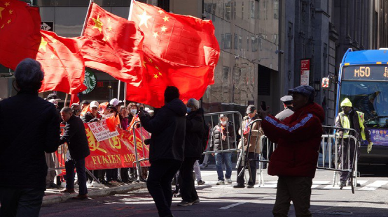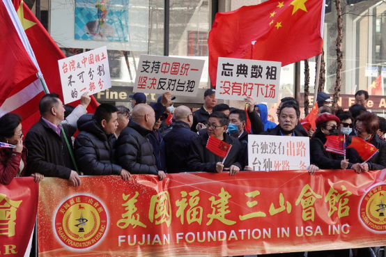 台灣聯合新聞網3月29日紐約皇宮飯店現場圖片 據台灣聯合新聞網報道,蔡英文抵達後快速進入飯店,全程不到30秒;而在其入住的皇宮飯店對面,有大陸僑胞集結表達不滿。 台灣“中央社”報道則稱,蔡英文抵達前,飯店對面街道聚集有美國本地大陸社團號召的抗議人士,喊口號反對蔡英文“過境”美國。 據台灣聯合新聞網30日刊發的新聞圖片,反對蔡英文“過境”竄美的大陸僑胞打出的標語出現“蔡英文大漢奸”、“出賣台灣是民族罪人”、“台灣是中國領土不可分割的一部分”、“支持中國統一 堅決反對台獨”、“台獨沒有出路”、“台獨死路一條”、“要和平 反台獨”等字樣。還有人揮舞五星紅旗。↓
