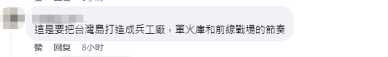 還有人批評,“這是要把台灣島打造成兵工廠,軍火庫和前線戰場的節奏。” ↓