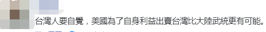 還有網友直接嗆美國,“美國為了自身利益出賣台灣更有可能。”