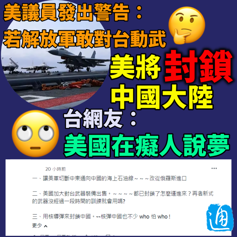 若大陸對台動武,美國可用3措施封鎖?美參議員“建議”惹台網友群嘲!分享到: