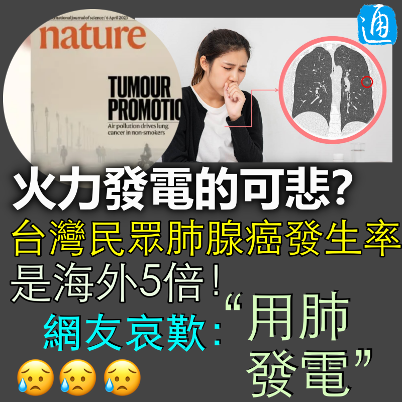圖片製作:汪彥希 文章認為,這表示台灣的空氣污染防治做得“不太好”,造成的原因除台灣的地理位置不理想外,工業、能源政策等也要“背鍋”。 文章指出,過去台灣空氣污染,台當局有關部門始終不承認是工業化的原因,尤其是當局推出“非核家園”之後供電不穩,為保證島內民眾“不缺電”,燃煤發電比重增加,進而導致空氣狀況不斷惡化,台灣的PM2.5產出,運輸類約佔三分之一,這部分不太可能減少;電力、發電的佔比快要達一成,煤電質量不易控制,不想缺電只能多燒煤。 中國國民黨“立委”賴士葆亦注意到有關論文。他引述權威醫學期刊《Nature》的最新研究指,台灣地區增加肺腺癌的人數,是海外的3至5倍。 “台灣人肺腺癌發生率比國外高幾倍的驚悚數字,台當局會佯裝不知!”他認為,改善整體空污是台當局責任,但民進黨當局卻以“非核家園”綁架台灣全體民眾,為了要達到所謂的淨零碳排狂推綠能,卻來不及填補能源缺口,只好倚重會排放大量空污的火力發電,讓台灣民眾“用肺發電”,坐視肺腺癌威脅台灣民眾健康! 台北市聯合醫院陽明院區胸腔內科主治醫師蘇一峰也指出,空氣污染不見得全都與發電廠有關,但至少是當局能改善的項目,尤其未來能源政策朝廢核前進,代表將來空氣污染只會不斷增加,質疑是否要讓台灣民眾“用肺發電”? 不過,針對《Nature》發表的最新研究,台“環保署”18日稱,文獻中各國及地區PM2.5濃度、暴露評估方式、癌症登記資料年份皆不同,並未直接進行比較。認為所謂“台灣肺腺癌罹患率全球第一”是嚴重誤解其內容,又強調台灣空污問題自2013年後已大幅改善。 然而,有關解釋難令台灣民眾信服! “火力全開,吸空污吸飽吸滿,無良政客不把人民健康當回事?”在有關消息的評論區內,不少網友哀歎:“這就是火力發電的可悲啊,核四被民進黨關掉了,現在只能燒煤和天然氣”。 也有網友憤怒地說:“民進黨禍害台灣,一定會有報應。” 【編輯:汪彥希】