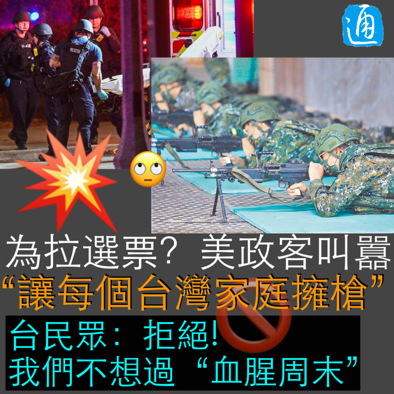 美政客叫囂“讓每個台灣家庭擁槍”,遭台灣各界炮轟!分享到: