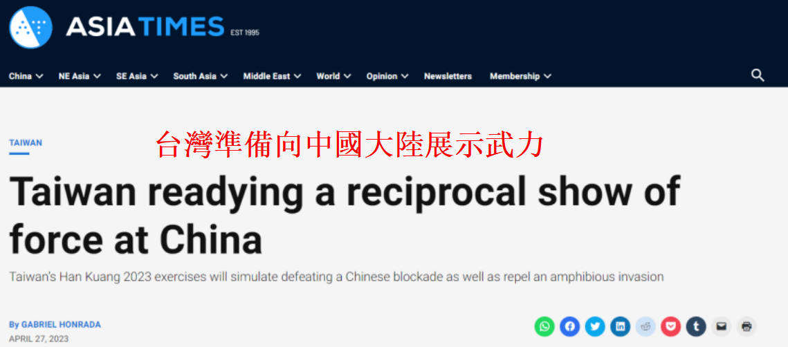 香港《亞洲時報》報道截圖 文章稱,台灣正在籌備一年一度的“漢光”軍事演習(7月24日至28日),這是一場“挑釁性”的武力展示,因為人們擔心台灣與中國大陸即將發生“一場衝突”。 值得注意的是,今年的演習包括對打破中國大陸“封鎖”的模擬。另外,一個美國製造的系統將對聯合行動進行全天候的計算機模擬。 與今年相比,2022年“漢光”軍事演習側重於疏散和民防演習、海空演習、反兩棲入侵演習和模擬機場佔領。雖然“漢光2022”中的許多演習場景模擬了一部分中國大陸的“進攻”。但該演習的劇本性質不足以讓台灣軍隊為一場真正的“槍戰”做好準備。 另外,“漢光”軍事演習只是一種“能力展示”,而不是“實戰演練”。因此,“漢光”應該衡量台灣發展所需的能力,而不僅僅是對台灣整體軍事現代化的泛泛檢查。 儘管台灣決定通過“漢光”演習來塑造“可靠的防禦”,但具有系統性的局限,包括征兵難,台灣民眾“抵禦進攻”的決心存疑,以及台軍整體現代化的進程緩慢。