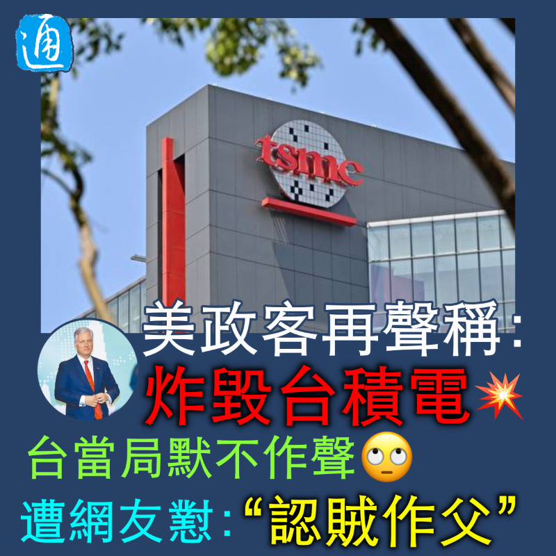 美政客再揚言“炸毀台積電”,台當局“無反應”遭批離譜!分享到: