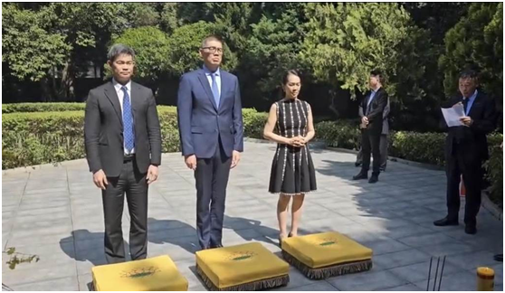 連勝文三姐弟上午赴西安清涼寺祭拜曾祖母。 中時新聞網圖片 據台灣“中時新聞網”報道,連勝文的曾祖父連雅堂長眠於新北市泰山區,曾祖母沈璈則安葬於陝西西安清涼寺。自2005年時任國民黨主席連戰赴大陸展開“和平之旅”之後,連氏家族每年都會派連氏兄弟姐妹輪流前往西安掃墓。受疫情影響,過去4年連氏家族未能一如既往地回到西安進行祭掃,如今大陸優化防疫政策,由連勝文及姐姐連惠心及弟弟連勝武代表家族赴西安祭祖。