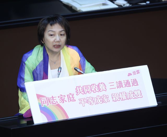 民進黨立委范雲身披象征LGBT的彩虹旗登台發言。ETtoday新聞雲圖片 據台灣“ETtoday新聞雲”的報道,台灣2019年5月便已通過《司法院釋字第七四八號解釋施行法》(同婚專法),使同性婚姻獲得法律承認。 但專法規定“同性配偶僅能收養配偶的親生子女”,而無法共同收養無血緣的小孩,這也導致許多待收養孩子找到適合家庭的機會變少。 時隔4年,“立法院”16日終於通過該法修正案,允許同性伴侶的無血緣收養。 據“聯合新聞網”報道,對於修正案的通過,民進黨立委范雲表示“我們終於在法律上,把同志家長還給他們的孩子了!這不僅是兒童權益的保障,也是符合這些家庭子女的最佳利益。” 立委洪申翰也表示“台灣是第一也是唯一同性婚姻合法的(亞洲)地區”,今年1月19日便已開放登記跨國同性婚姻,如今同志家庭共同收養的條文通過“更是為了保障跨越血緣的愛。” “台灣伴侶權益推動聯盟”隨後在臉書上發文稱,本次修正案的通過是台灣“婚姻平權的再躍進”,這一次的成功再次證明台灣的社會共識是“LGBTI人權保障與促進性別平等”(LGBTI是女同性戀、男同性戀、雙性戀、跨性別和雙性人群體的簡稱)。 不過這番言論卻引來眾多網友的爭議,臉書相關評論區短時間內就有數千條評論: 有支持者認為“這個政策很好,這樣可以安頓更多孤兒院的孩童”