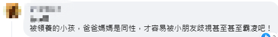 但LGBTI畢竟是少數群體,且與台灣的傳統價值觀相悖,所以更多的網友表示質疑: “被領養的小孩,爸爸媽媽是同性,才容易被小朋友歧視甚至霸淩吧!”