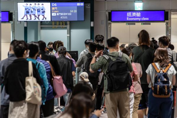 圖為台灣民眾在桃園機場搭機前往大陸。香港中通社圖片 桃園機場22日稱,機場塔台上午9時30分接獲通報上空有不明飛行物,為維護飛航安全,立即依作業程序暫停航機起降,並會同當地警方前往查看,確認周邊已無異常活動後,於10時10分恢復起降。 據機場統計,不明飛行物導致5班入境航班、2班轉機航班受影響,其中最長延誤達62分鐘,共有約1200名旅客行程受阻。 外界關心不明飛行物或為無人機,桃園機場強調,無人機闖入機場管制範圍將嚴重威脅飛行安全,還會影響旅客權益,可依法移送當局民用航空局及建議處罰。(完) 【編輯:胡雪石】