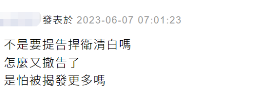 還有網友諷刺道:不是要提告捍衛清白嗎?怎麼又撤告了,是怕被揭發更多嗎?↓