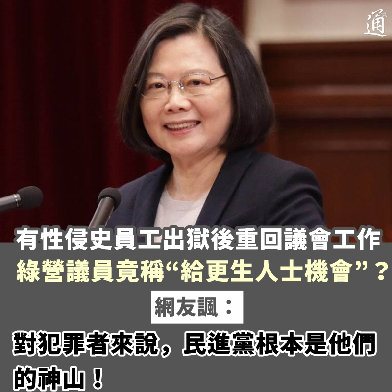 有性侵史員工出獄後重回議會工作,綠營議員竟稱“給更生人士機會”?分享到: