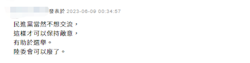 “陸委會可以廢了”,有網友稱,“民進黨當然不想交流,這樣才可以保持敵意,有助於選舉。”