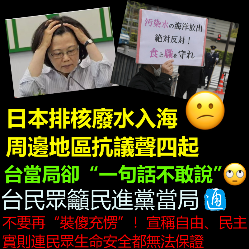 台當局對日本排核廢水保持“緘默”,引發島內民眾怒火!香港新聞網6月14日電 日本預計最快將於7月排放核廢水入海,有關舉措引發周邊國家及地區持續抗議,批評日本 “極其不負責任”。值得注意的是,自詡“台日友好”的民進黨當局又在發聲的浪潮中“隱形”了,引得不少台灣黨派及民間團體公開喊話民進黨當局不要再“裝傻充愣”,為了民眾的生命健康應該向日本表達嚴正抗議。