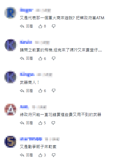美前高官率團來台推銷武器 台灣網友:又是戰爭販子來勒索!分享到: