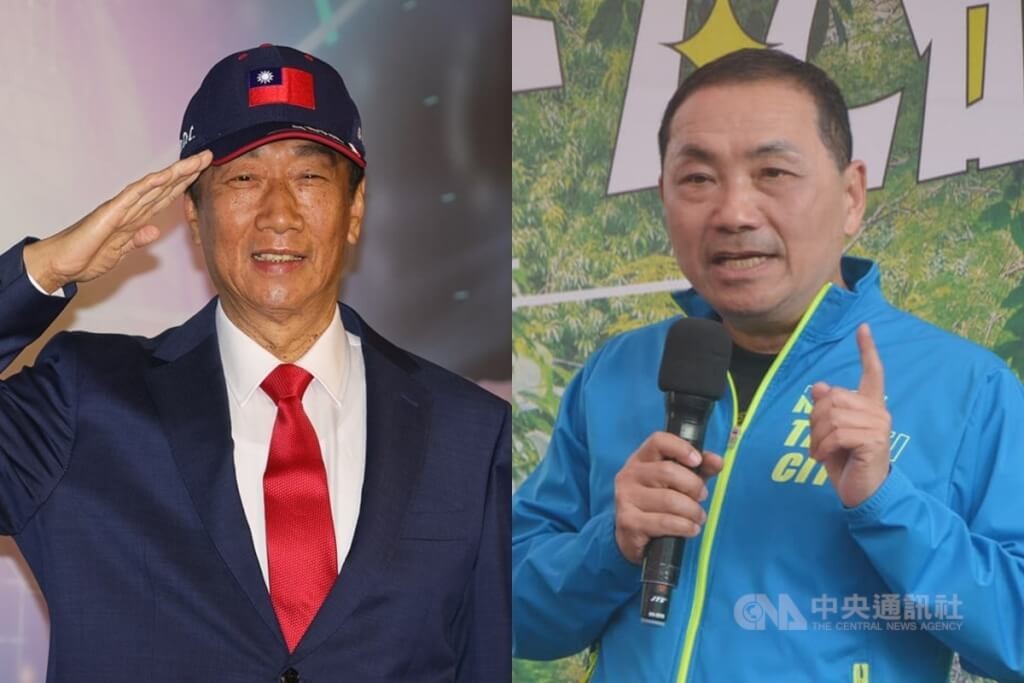 郭台銘(左)和侯友宜(右)。台灣“中央社”資料圖片 侯友宜和郭台銘今年5月12日曾在宮廟合體,被視為藍營整合有望。5月17日侯友宜獲得國民黨徵召後,民調不見樂觀。郭台銘爭取國民黨提名失利後,近期動作頻頻,被外界解讀可能獨立參選。時隔2個月,二人再度同台,彼此互動備受關注。 郭侯二人被安排在同一桌用餐,但中間隔了四個位置。侯友宜在致詞時,先語出驚人地稱這段時間用各種形式相約郭台銘見面,但始終不得其門而入。今天台東人熱情,讓他有機會在這里看到郭董事長。坐在台下的郭台銘則微笑不語。 侯友宜稱讚郭台銘是經濟產業重要領頭人,不斷推動台灣經濟發展;也提到二人都信仰關公,重情、重義、重承諾;更重要的是雙方有共同信念和目標,為兩岸和平繁榮一起努力。 郭台銘隨後致詞表示,沒想到能夠“巧遇”侯友宜。郭也說,新北市過去這麼多年來在侯友宜帶領下,蒸蒸日上,希望大家給侯友宜鼓掌。 晚宴過程中,郭侯二人曾握手執意,也互相敬酒,但總體而言未有太多互動。(完) 【編輯:俞丹凤】