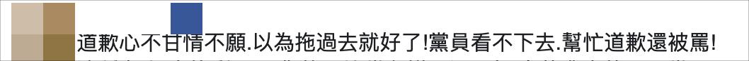“道歉心不甘情不願。以為拖過去就好了!黨員看不下去。幫忙道歉還被罵!”↓