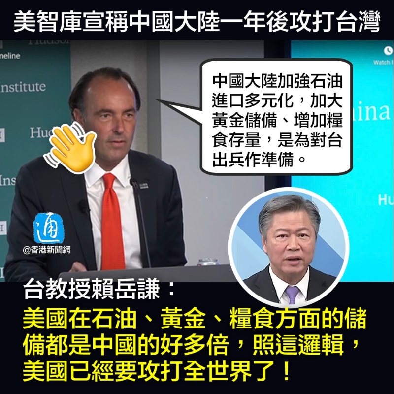 美智庫宣稱大陸一年後攻打台灣 台名嘴:照這邏輯美國要攻打全世界了!分享到:
