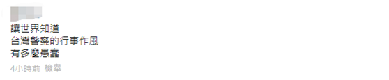 “讓世界知道,台灣警察的行事作風,有多麼愚蠢。”有網友說。↓