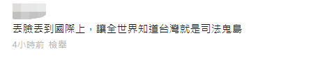 “丟臉丟到國際上”,還有網友稱,“讓全世界知道台灣就是司法鬼島。”↓