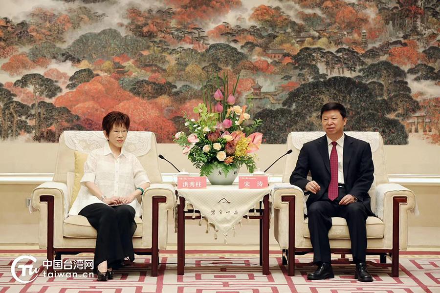 香港中通社7月25日電 中共中央台辦、中國國務院台辦主任宋濤7月24日在南京會見中國國民黨前主席、中華青雁和平教育基金會董事長洪秀柱等參加第三屆“攜手圓夢——兩岸同胞交流研討活動”的台灣嘉賓代表。
