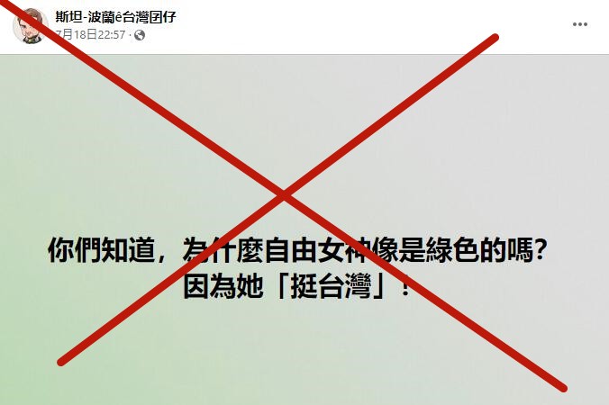 香港新聞網7月26日電 近日,一位波蘭反華網紅在社交媒體上發文:“你們知道為什麼自由女神像是綠色的嗎?因為她‘挺台灣’!”此言一出,不僅美國人傻眼了,台灣人也懵圈了......