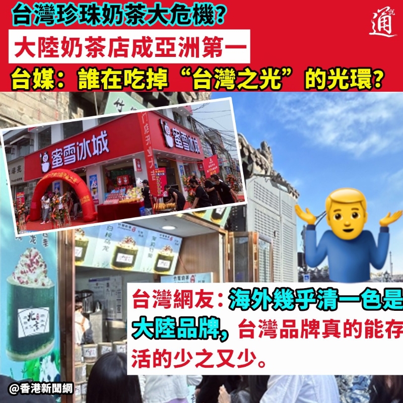 (圖源:蜜雪冰城官網) 為何其能用別人做不到的“地板價”賣飲料,還能越做越大賺錢? 台媒分析稱,它賺的不是飲料錢,而是供應鏈的服務費。指蜜雪冰城擁有逾2.4萬間加盟店,在2021年,光銷售食品原料、包材就佔其營收逾87%。 據悉,蜜雪冰城跨出國門後,在消費水平不高的東南亞國家如越南、印尼等地亦收穫大批忠實用戶。短短4年,蜜雪冰城在這些國家的門店就破千間。 “蜜雪冰城的下一個目標,很可能就是中價位的台灣手搖飲品牌。”台媒憂心忡忡地說,它只花4年就成為東南亞最大手搖飲業者,每個人都該關注,誰在吃掉“台灣之光”的光環? 這篇警示台灣奶茶優勢不再的文章一出,即引發廣大網友關注。 “說實話海外幾乎清一色是大陸品牌,”有台灣網友在有關消息的評論區留言,認同台灣珍奶在海外的競爭力早不復存在,稱“台灣品牌除了50嵐的海外品牌KOI,真的能存活的少之又少。” 不少網友亦指責台灣奶茶的價格“虛高”,稱“是台灣自己的手搖飲商搞掉市場,一杯(價格)直逼一餐,漲價後我都不喝了!”“不含任何牛奶的珍珠奶茶,本來就不是無可取代的!”