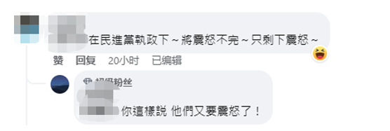 而對於台媒所說的台防務部門“震怒”,與維修商終止合約,有網友在臉書留言表示,台防務部門在民進黨“執政”下,將震怒不完,只剩下震怒。也有網友附和,“你這樣說,他們又要震怒了!”↓