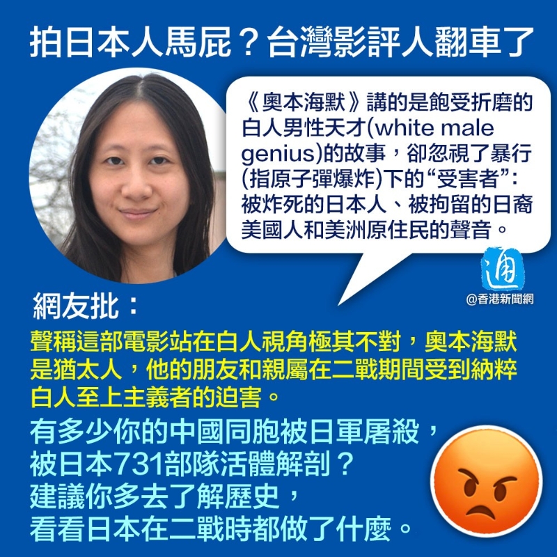 香港新聞網8月2日電 美國名導諾蘭執導的最新電影《奧本海默》於近期上映,可謂是叫好又叫座。當電影收穫一致好評時,一位移居美國的台灣影評人卻給出了差評,原因竟是電影沒有為二戰中的日本人發聲......