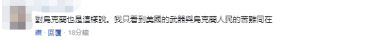 還有網友稱,“對烏克蘭也是這樣說,我只看到美國的武器與烏克蘭人民的苦難同在。”↓