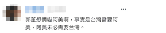 也有網友稱,“郭台銘想恫嚇美國,事實是台灣需要美國,美國未必需要台灣。”↓