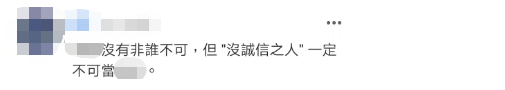 還有網友表示,台灣地區領導人沒有非誰不可,但“沒誠信之人”一定不可當。↓