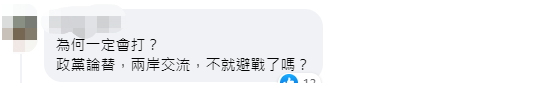 “為何一定會打?政黨輪替,兩岸交流,不就避戰了嗎?”↓