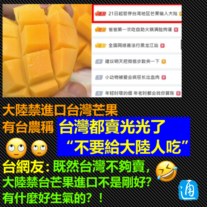 “芒果台灣就賣光了,不需要給大陸人吃”?網友笑綠媒:還能嘴硬幾天分享到: