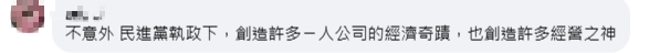 “不意外,民進黨執政下,創造許多一人公司的經濟奇跡,也創造許多經營之神。”