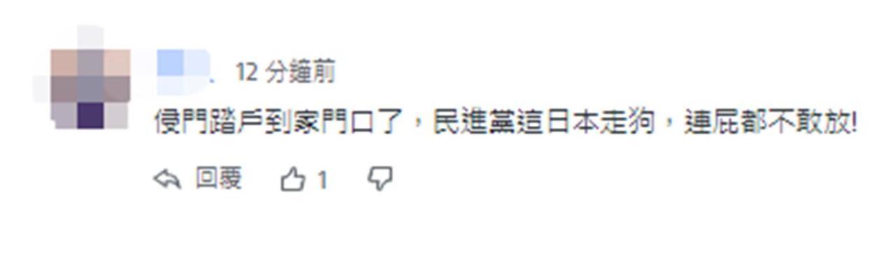 “侵門踏戶到家門口了,民進黨這日本走狗,連屁都不敢放!”