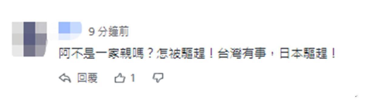 “阿不是一家親嗎?怎被驅趕!台灣有事,日本驅趕!”