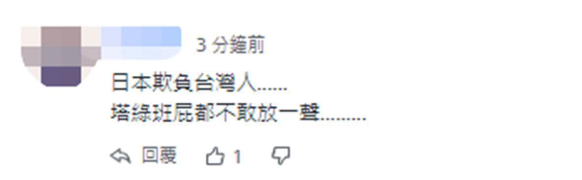 “日本欺負台灣人……塔綠班屁都不敢放一聲……” 【編輯:張依珊】
