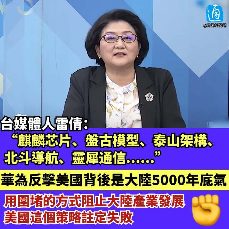 (香港新聞網製圖) “麒麟芯片、盤古模型、泰山架構、北斗導航、星閃鏈接、方舟引擎、靈犀通信、風馳閃拍。”雷倩提到,華為的產品名稱基本都有著深刻的中華文化內涵, “聽的時候就覺得很感動”,因為“今天的華為,打的是大陸上下五千年的底氣”。 她指出,大陸不是只有華為一家公司,因為麒麟9000芯片能夠產生,從EDA、光刻膠、光刻機、蝕刻技術、大型芯片到其他封裝測試的各個環節,都須有協力廠商。形容華為所在的大生態圈,正在用五千年的底氣去對抗美國展開的科技與資本戰。 美國會否因為華為此次突破而“懷憂喪志,最後棄甲曳兵”?雷倩認為,美國後續或展開進一步制裁。 談及此,雷倩分享了自己在深圳遇到的一位司機師傅的話,對方揶揄“美國制裁來制裁去,就是制裁了深圳南山區粵海街道辦”,因為被美國制裁的科技公司大多集中在該區域。然而,除此之外,“大陸還有何其多的其他地方”。 “用圍堵的方式阻止(大陸)產業發展,美國這個策略註定失敗。”雷倩強調,大陸內部會有越來越多的生態圈,這些生態圈亦會有外部的朋友圈加入,例如高通就要和麒麟接軌。如今,“鴻蒙、安卓和蘋果的iOS三個系統鼎足而立的時代已經來臨”,未來或許還有其他系統問世。 台灣前外事官員介文汲同樣認為,美國會繼續加強對大陸科技的攻勢。下一階段中美科技戰便進入“2.0版”,“美國會打得更髒、下手更重”。 不過,正如中國外交部發言人毛寧8日在例行記者會上所言,“制裁、遏制、打壓阻止不了中國發展,只會增強中國自立自強、科技創新的決心和能力。” 【編輯:王瑶】