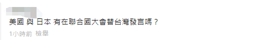 還有網友質疑,“民進黨的爸爸跟大哥哥呢!也提案啊?!人呢!?說好的史上關係最好?!” “美國與日本,有在聯合國大會替台灣發言嗎?”↓