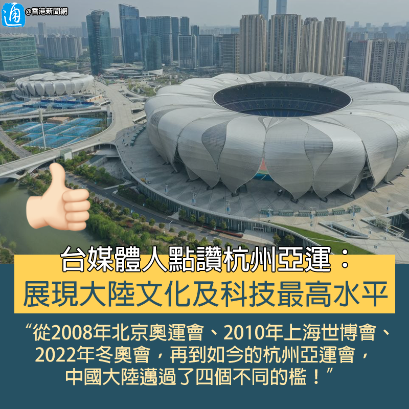 香港新聞網製圖 雷倩還認為,亞運的成功舉辦體現了一種新的世界秩序。“美國主導的聯合國是過去的世界秩序,是用權力和拳頭來決定誰講話”,但是亞運使用科技來服務民眾展現出一種新的趨勢,即“誰的科技能夠為人類提供更多的福祉,誰講話。” “如果兩岸關係更好的話,是不是會有更多的台灣公司在亞運這個幾乎是未來世界藍圖縮影的這個大的競技場上,有爭奪冠軍的機會。”最後,雷倩呼籲兩岸關係更進一步,讓更多台灣企業“未來有這樣的機會”。 台灣前外事官員介文汲也稱讚杭州亞運會成為中國大陸向世界展示自己文化的“自豪的符號”。他表示,過去西方以自身一元的文化去踐踏其他文化,導致其他文化漸漸失掉信心,而本屆亞運會將成為大陸向世界展示中國文化的“很好的起點”。 介文汲還提到BBC唱衰杭州亞運會的相關報道,嘲諷BBC“見不得中國好”,竟聲稱大陸投入巨額財力不如幫助民眾就業。他質問,BBC到底是嫉妒大陸到什麼程度?“他難道不知道,辦亞運會將杭州帶到一個經濟發展的快速軌道嗎?” 台灣前“立委”郭正亮則對亞運的媒體中心大感驚艷,稱媒體中心可雲端剪輯,即時回送,連奧委會都大讚未來應參考辦理,“這難度非常高!” 郭正亮認為,大陸透過國際賽事的舉辦,展現當下科技最高水平,藉機轉型、升級城市。亞運準備了8年,投入2000億人民幣,還蓋出亞洲最大的電競中心,將大增杭州的國際觀光知名度。 【編輯:李冉】